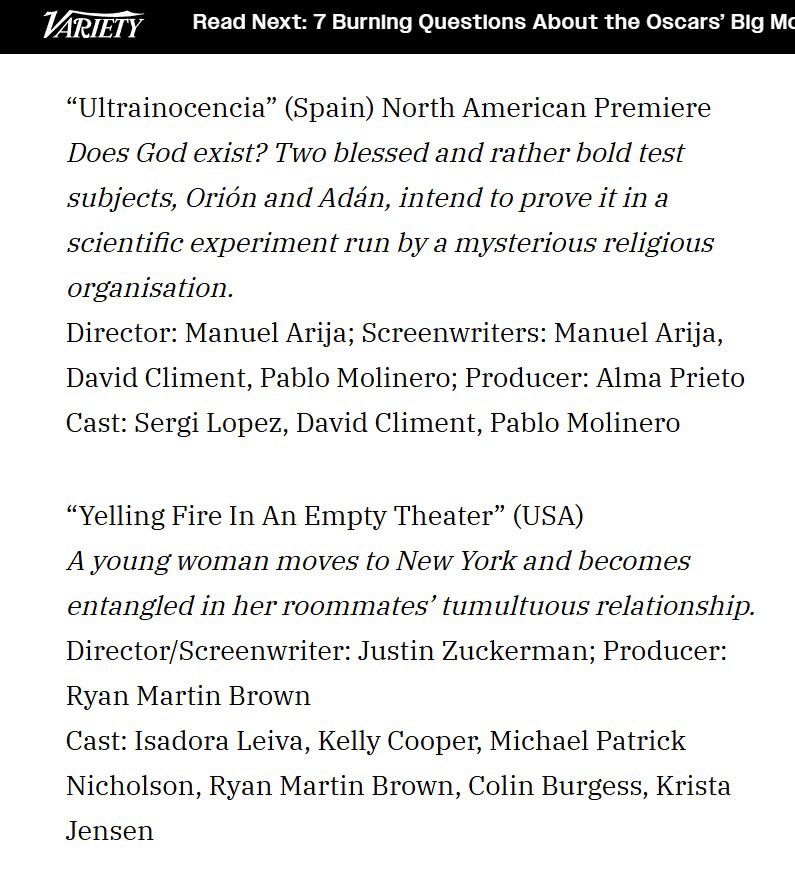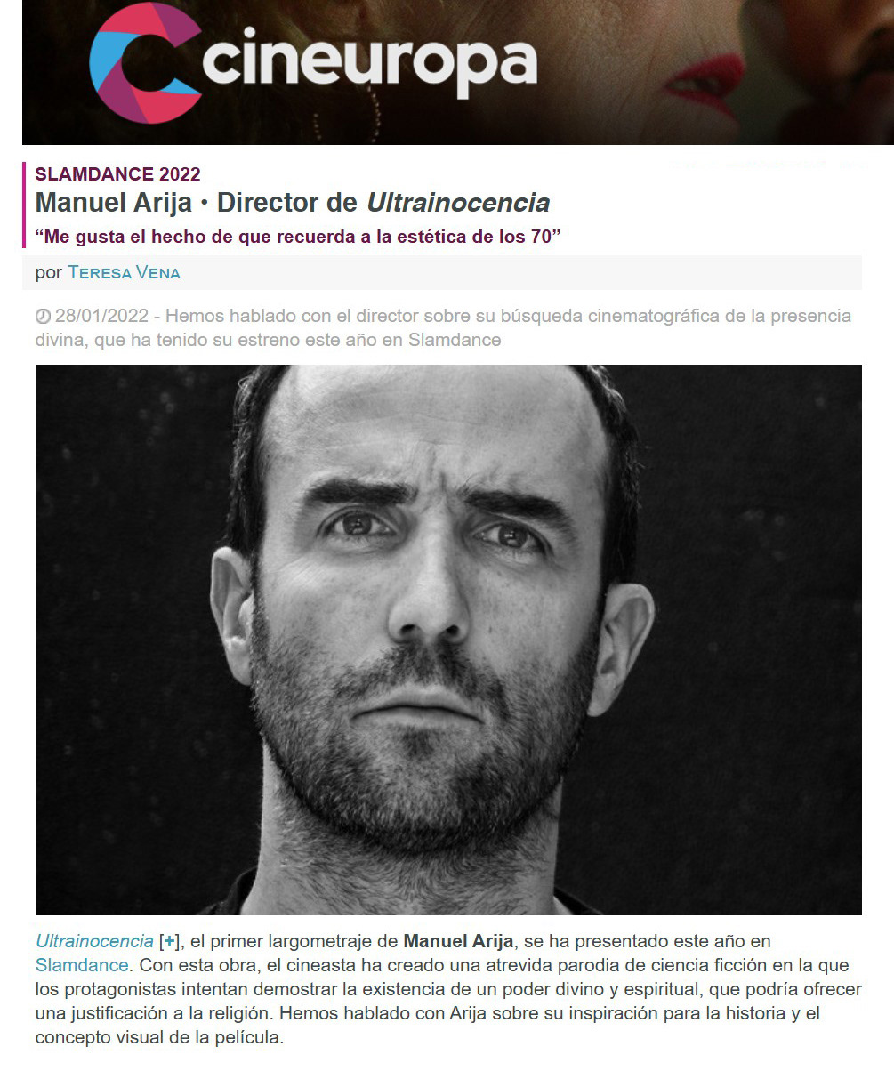 “Ultrainocencia es una comedia surrealista que, con ciertas referencias a Kubrick, la ciencia ficción de los 70 (que me encantaron) y una obra de teatro experimental explora la búsqueda del divino a través de una nave espacial, el movimiento y el aislamiento completo del mundo real. Existe una metáfora del proceso creativo, tiene bastante humor surrealista para hacerte reír, pero tampoco le faltan sus momentos de tristeza y de desesperación. Todos hemos perdido la fe en algún momento y es saber reinventarse lo qué realmente importa.” A. FilmAffinity
